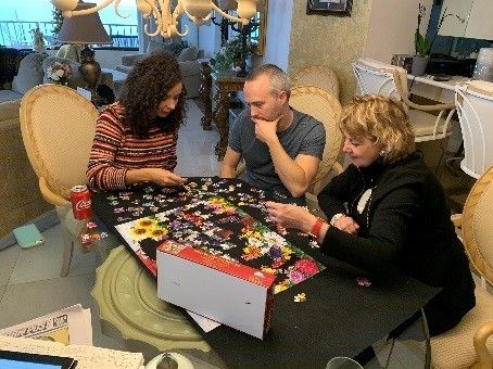 Daniela got her love for puzzles from her mother. Audrey thinks that it will be fun, the next time Edna visits from Brazil, to invite her to come to the table and they can work on a big puzzle together. She speaks very little English, and Audrey speaks no Portuguese, so sometimes their communication can be filled with long, awkward silences.