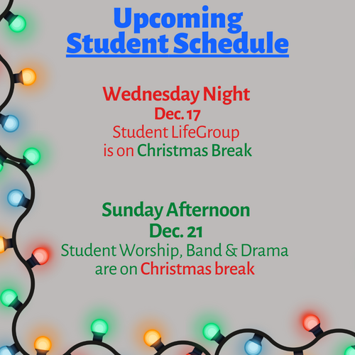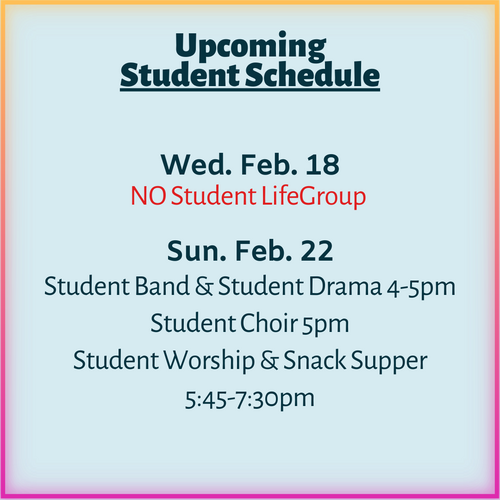 Meet in the *Student Garage for Snack Supper at 5:45 p.m. Then, we'll jump into worship, teaching and connecting in discussion groups. Student Worship meets from September to May.
